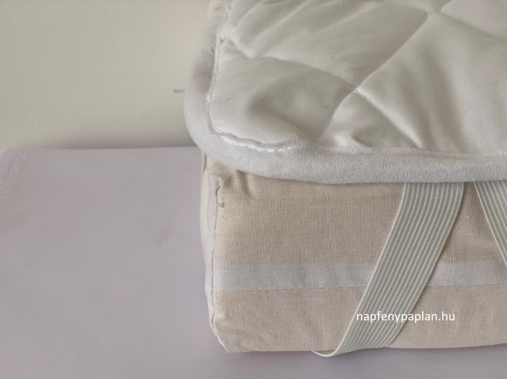 Az ágyvédő 4 sarkán elhelyezett praktikus gumifüleknek köszönhetően mindenféle ágy- és matractípusra egyszerűen rögzíthető. Az ágyvédőben a töltet elmozdulását steppelőgépen készített kárómintás speciális levarrás akadályozza meg.