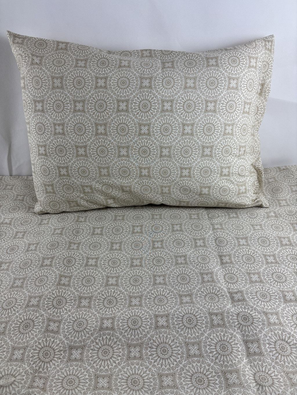 A termék alapanyaga 50% pamut - 50% poliészter szálakból szőtt vászonkötésű textília, mely a könnyen kezelhetőséget és a természetességet harmónikusan ötvözi. Olcsó, strapabíró ágynemű. Bujtatós kivitelben készül.