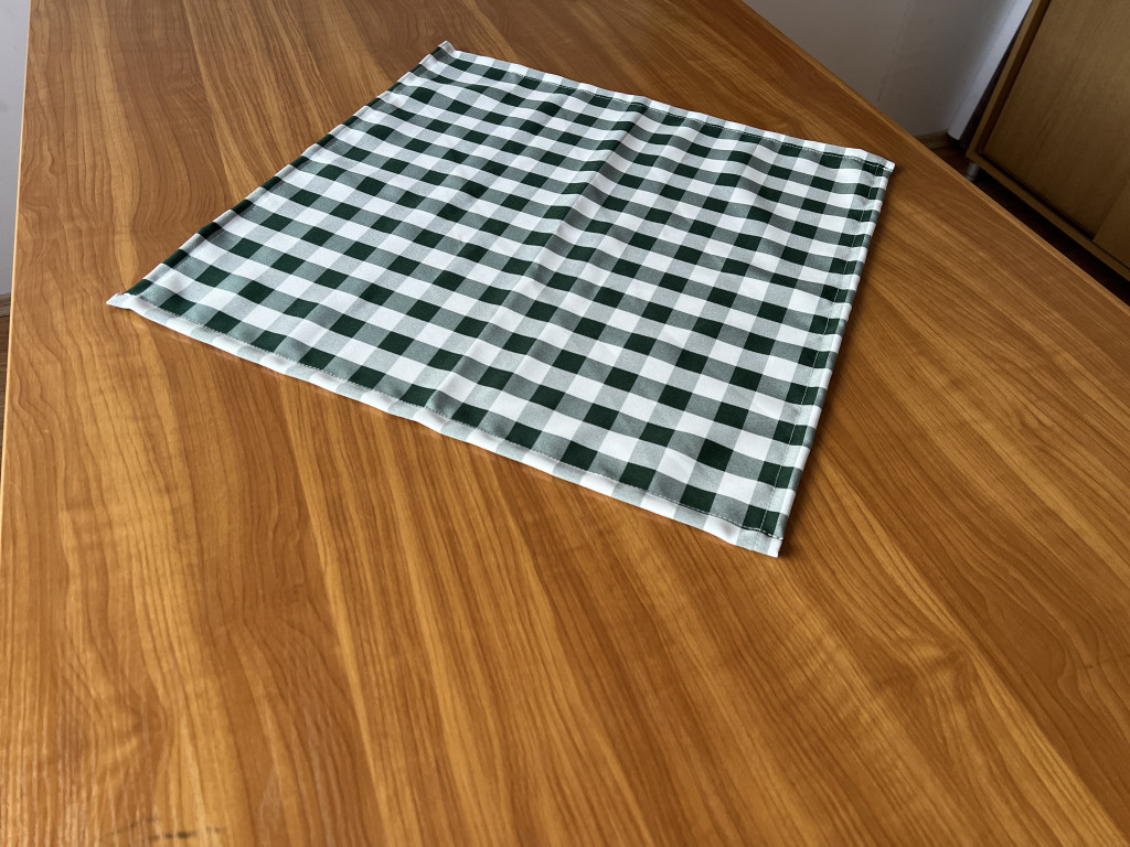 Anyaga kockás, nyomott mintás panama kötésű textília, 100% poliészter